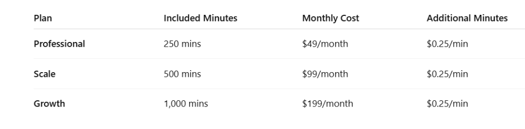 🔄 Pro Tip: Most solo businesses land in the Professional plan. But if you’re running ads or get more than 10+ calls a day, start with Scale.