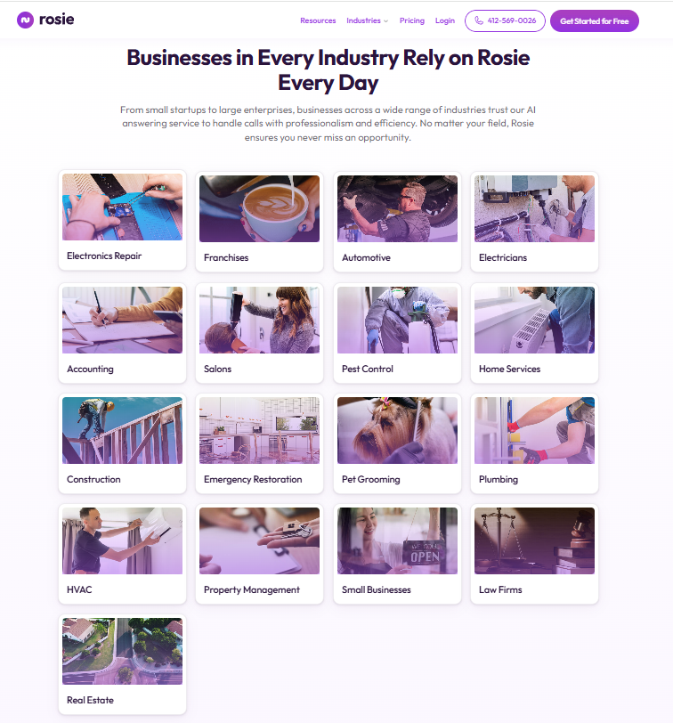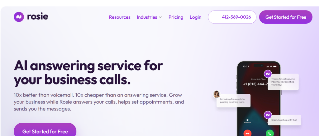 Rosie doesn’t sleep. Whether it’s a Saturday morning or Tuesday at 9 p.m., she picks up. Great for businesses that close at 5 but still want to catch leads.